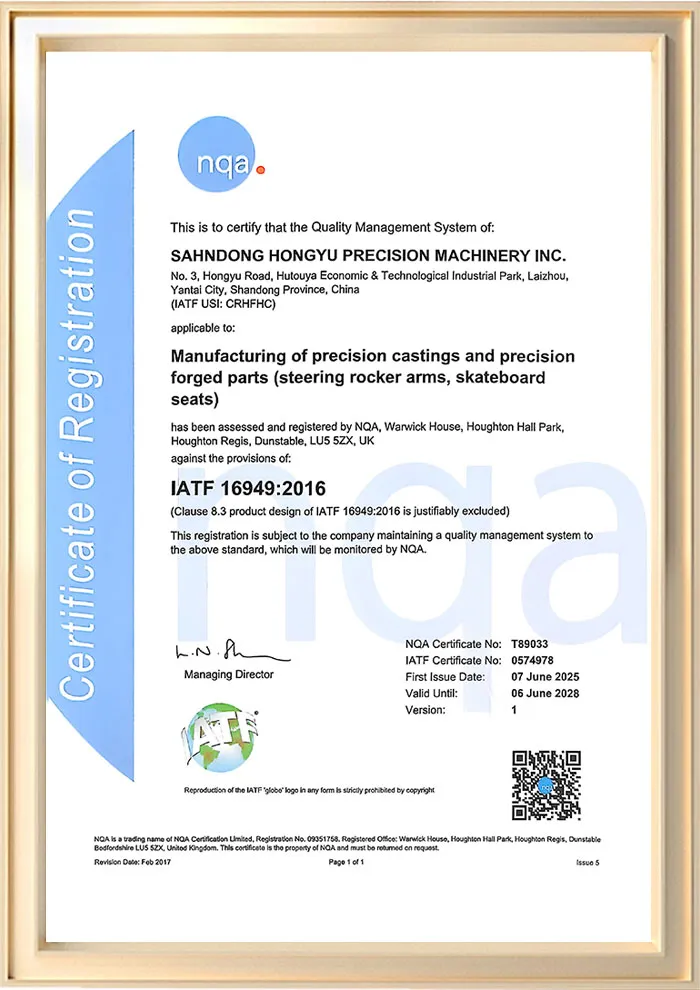 В настоящее время компания обладает множеством национальных и провинциальных почетных званий, включая национальное предприятие «Маленький гигант» специализации, совершенства, особенностей и новизны, предприятие-чемпион отдельной номинации провинции Шаньдун, ведущее предприятие по производству компонентов для сельскохозяйственной техники в Китае, «заместитель председателя» отделения компонентов Ассоциации сельскохозяйственного машиностроения Китая, предприятие из «белого списка» ключевых промышленных и снабженческих цепочек страны и провинции, высокотехнологичное предприятие провинции Шаньдун, предприятие-эталон качества провинции Шаньдун, предприятие-эталон управления провинции Шаньдун, цифровой цех провинции Шаньдун, технический центр предприятий провинции Шаньдун, центр промышленного дизайна провинции Шаньдун, научно-исследовательский центр «одно предприятие — одна технология» провинции Шаньдун. Получены сертификаты системы менеджмента качества IS09001, сертификат системы менеджмента качества IATF16949, сертификат системы экологического менеджмента IS014001, сертификат системы менеджмента профессиональной безопасности и здоровья IS045001.