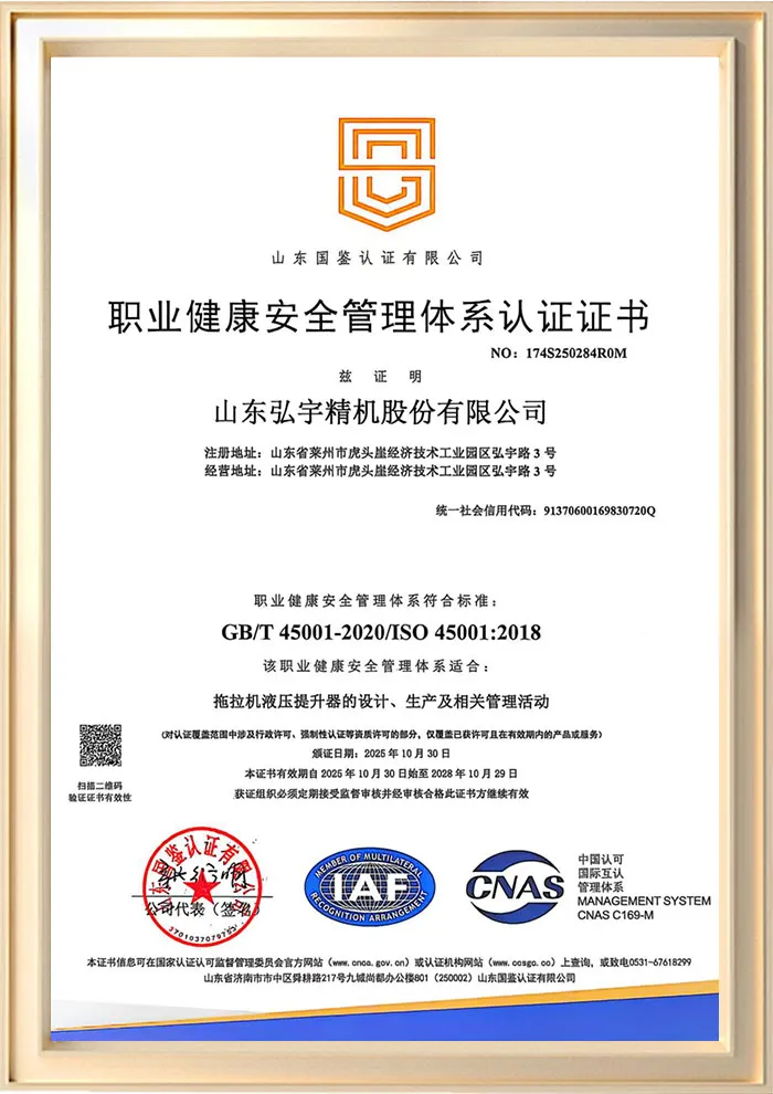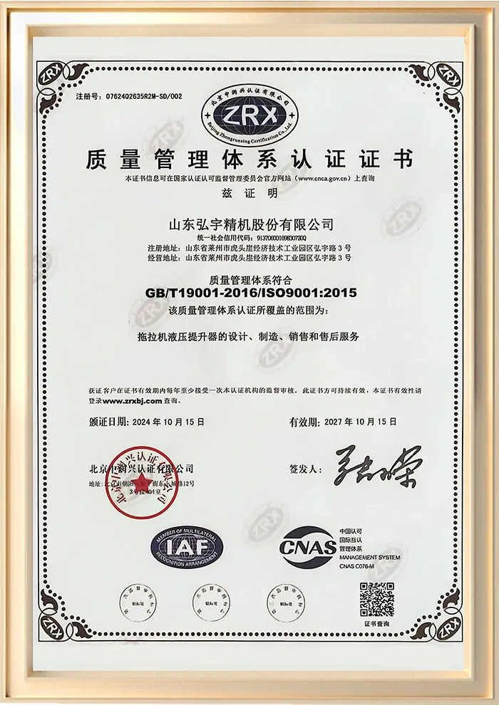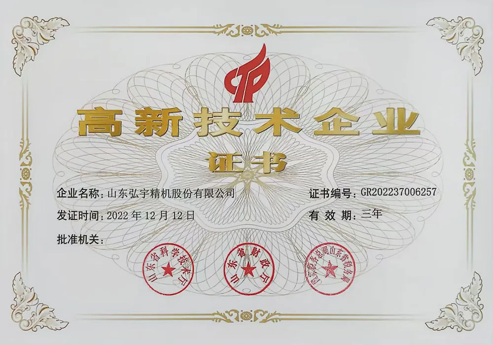 Разработанные и производимые компанией гидравлические подъемники неоднократно получали премию за научно-технический прогресс провинции Шаньдун и премию за новую национальную продукцию; продукция компании была оценена как «Фирменная продукция провинции Шаньдун», торговая марка «Хунъюй» была оценена как «Известная торговая марка провинции Шаньдун»; высокотехнологичная научно-исследовательская команда компании сформировала ключевую конкурентоспособность в технологии продукции, способствуя трансформации и модернизации продукции компании.
